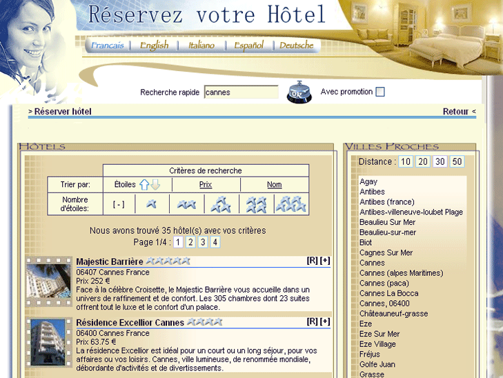 hotel Cannes reservationPour réserver votre hotel Cannes, vous devez vous rendre sur le descriptif de l'établissement que vous avez choisi en cliquant sur la vignette ou le lien de la page présentation de l'hotel Cannes. La fiche de visite pour réserver hôtel comporte page une vue d'ensemble, une page chambre, une page Bar/Restaurant, une page Carte pour visualiser la situation de l' hotel Cannes que vous aurez choisi. Il ne vous reste plus qu'à remplir le formulaire de la page reservation de l"hotel Cannes" et à cliquer sur le bouton. hotel Cannes à prix réduitLes prix que nous vous proposons pour reserver votre hotel Cannes sont négociés directement avec les hôteliers qui sont nos partenaires et remplissent eux même leur grille deprix . Afin que le prix de votre hotel Cannes soit toujours avantageux pour vous, n'hésitez pas à chercher afin de reserver hotel Cannes. hôtel Cannes avec 1001--hotel.comHotel Excellior