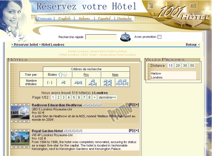 hotel Londres reservationPour réserver votre hotel Londres, vous devez vous rendre sur le descriptif de l'établissement que vous avez choisi en cliquant sur la vignette ou le lien de la page présentation de l'hotel Londres. La fiche de visite pour réserver hôtel comporte page une vue d'ensemble, une page chambre, une page Bar/Restaurant, une page Carte pour visualiser la situation de l' hotel Londres que vous aurez choisi. Il ne vous reste plus qu'à remplir le formulaire de la page reservation de l"hotel Londres" et à cliquer sur le bouton. hotel Londres à prix réduitLes prix que nous vous proposons pour reserver votre hotel Londres sont négociés directement avec les hôteliers qui sont nos partenaires et remplissent eux même leur grille deprix . Afin que le prix de votre hotel Londres soit toujours avantageux pour vous, n'hésitez pas à chercher afin de reserver hotel Londres. hôtel Londres avec 1001--hotel.comHotel