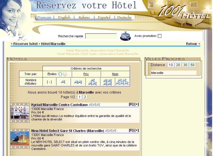 hotel Marseille reservationPour réserver votre hotel Marseille, vous devez vous rendre sur le descriptif de l'établissement que vous avez choisi en cliquant sur la vignette ou le lien de la page présentation de l'hotel Marseille. La fiche de visite pour réserver hôtel comporte page une vue d'ensemble, une page chambre, une page Bar/Restaurant, une page Carte pour visualiser la situation de l' hotel Marseille que vous aurez choisi. Il ne vous reste plus qu'à remplir le formulaire de la page reservation de l"hotel Marseille" et à cliquer sur le bouton. hotel Marseille à prix réduitLes prix que nous vous proposons pour reserver votre hotel Marseille sont négociés directement avec les hôteliers qui sont nos partenaires et remplissent eux même leur grille deprix . Afin que le prix de votre hotel Marseille soit toujours avantageux pour vous, n'hésitez pas à chercher afin de reserver hotel Marseille. hôtel Marseille avec 1001--hotel.comHotel
